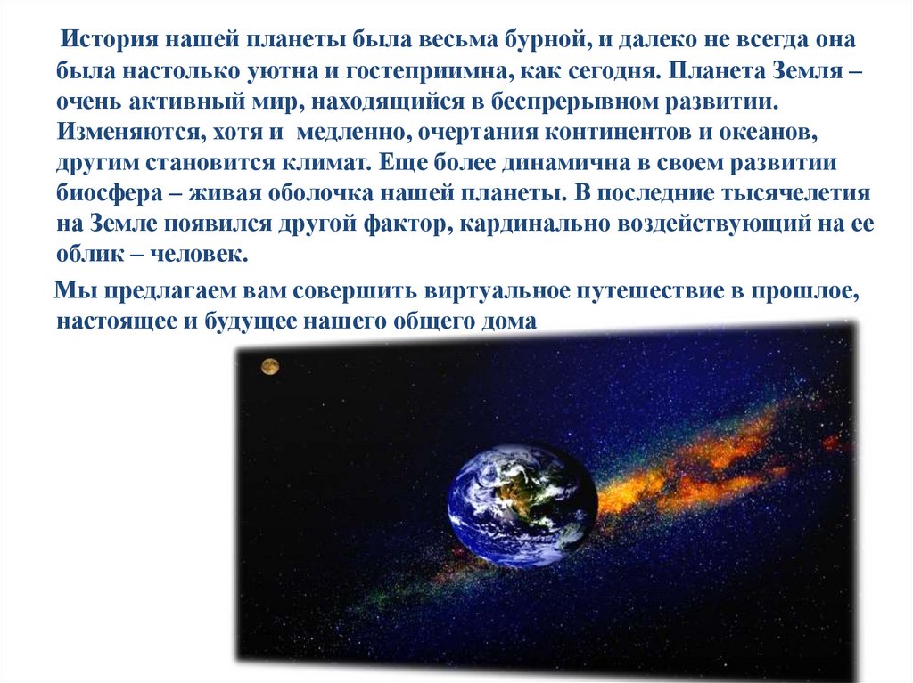 История нашей планеты была весьма бурной, и далеко не всегда онабыла настолько уютна и гостеприимна, как сегодня. Планета Земля –