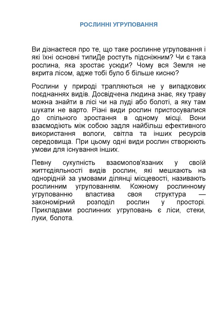 РОСЛИННІ УГРУПОВАННЯВи дізнаєтеся про те, що таке рослинне угруповання і