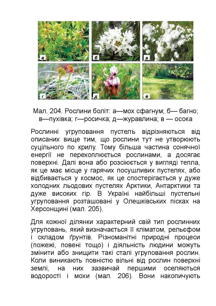 трави (росичка, пухівка, деякі осоки) (мал. 204). Але