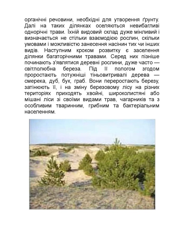 органічні речовини, необхідні для утворення ґрунту.Далі на таких ділянках оселяються невибагливі