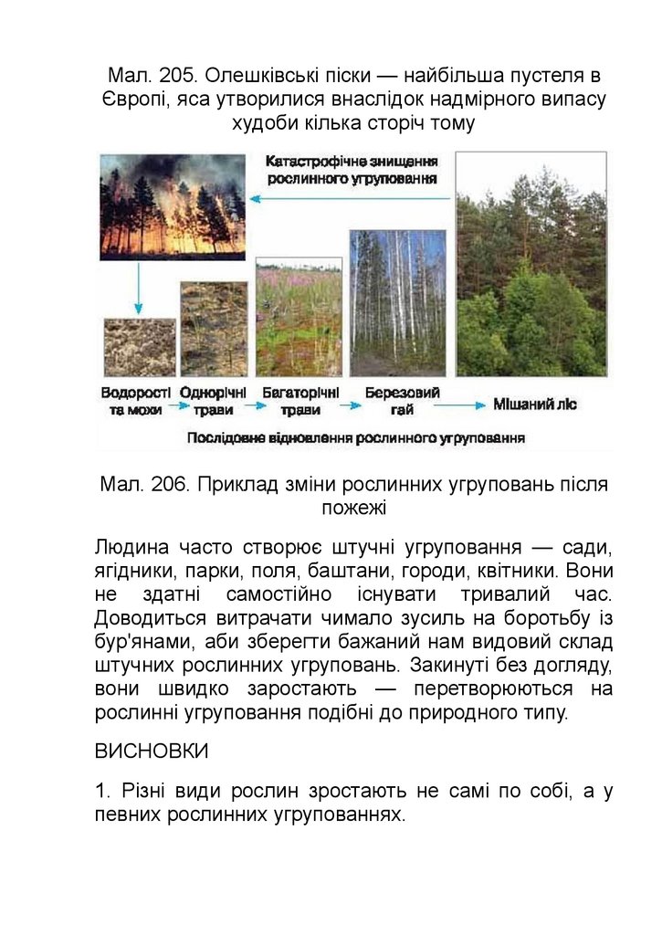 Maл. 206. Приклад зміни рослинних угруповань після