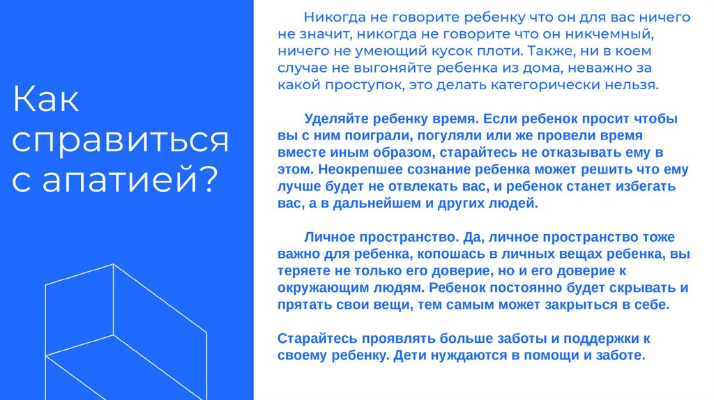 Причины возникновения апатии• Одна из самых распространенных причин недостаток заботы, поддержки и внимания.