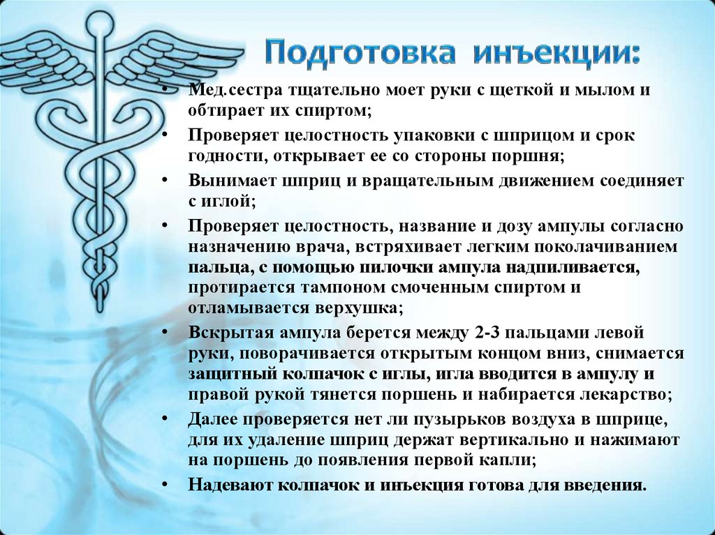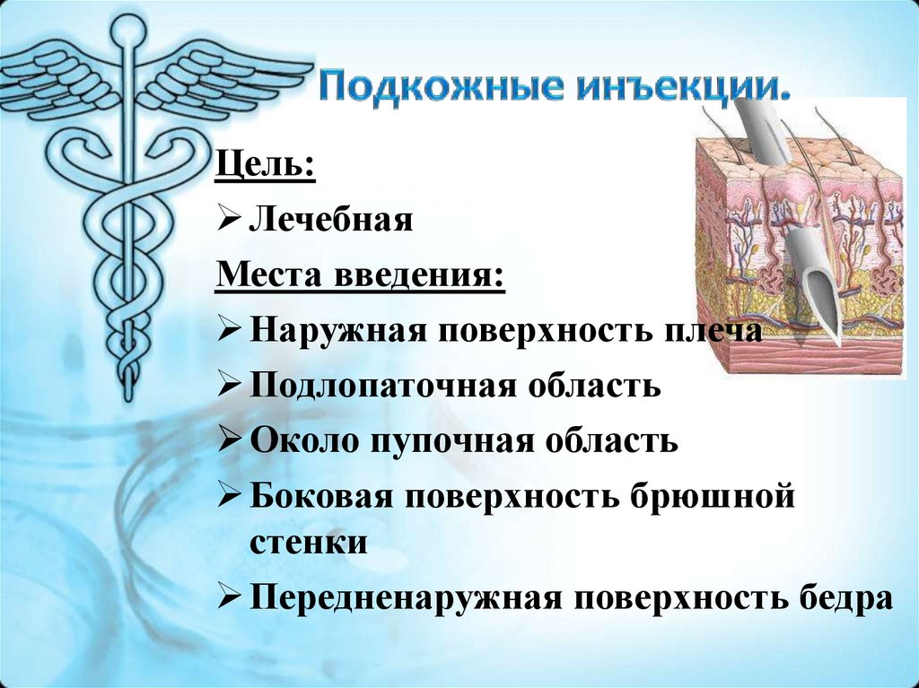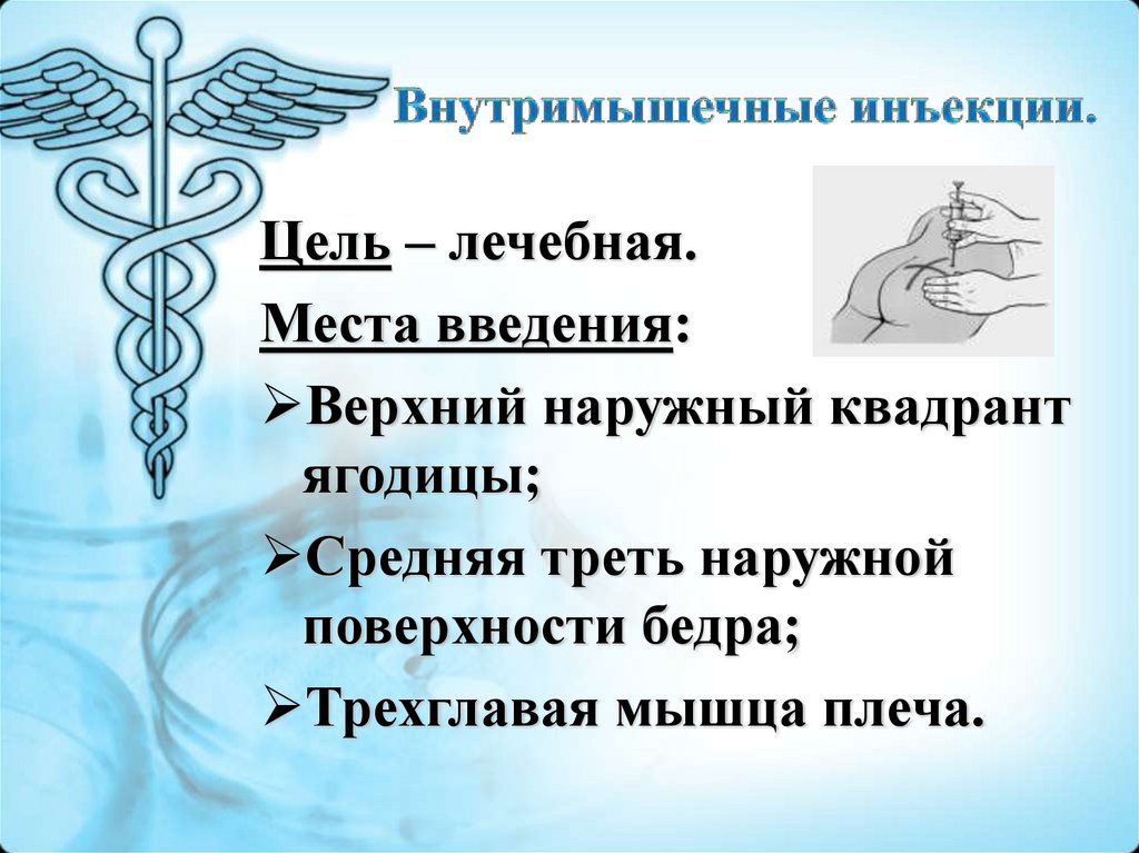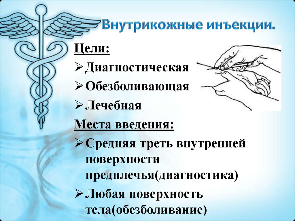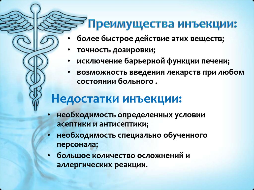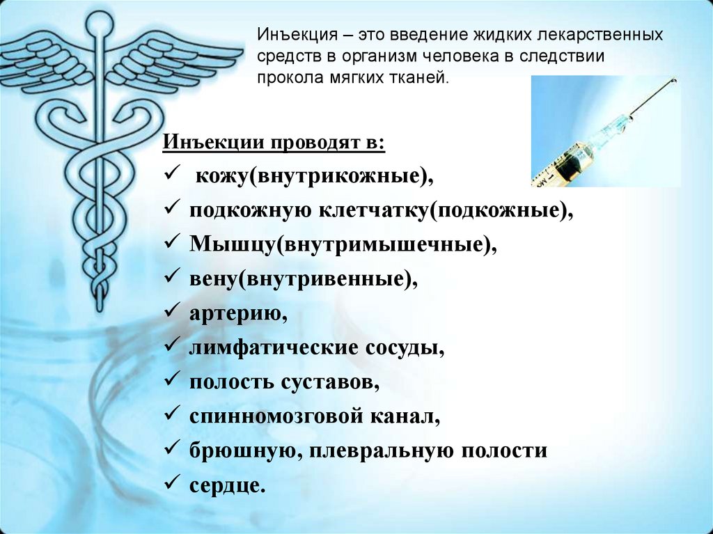 Инъекция – это введение жидких лекарственныхсредств в организм человека в следствии
