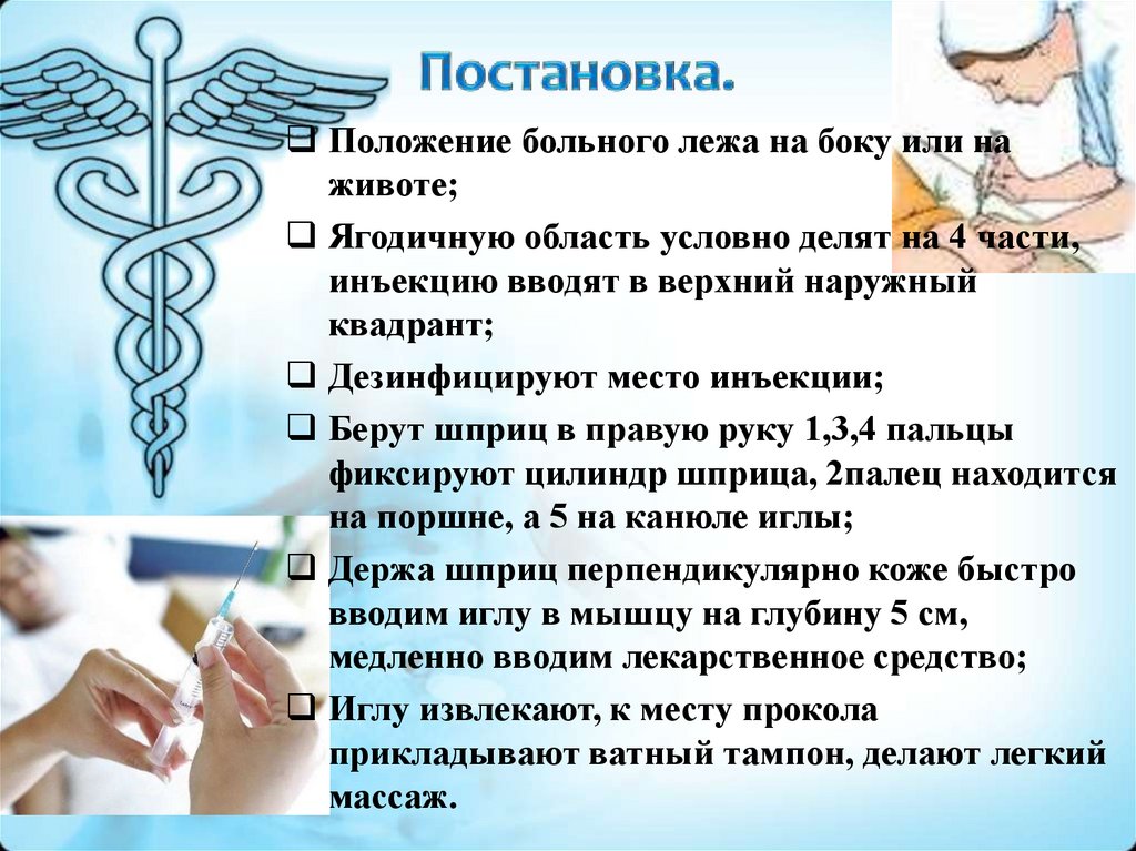 Положение больного сидя на стуле, оголив кожув месте инъекции: