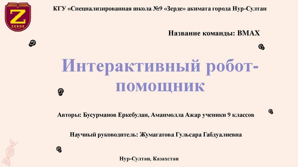 КГУ «Специализированная школа №9 «Зерде» акимата города Нур-СултанНазвание команды: BMAX