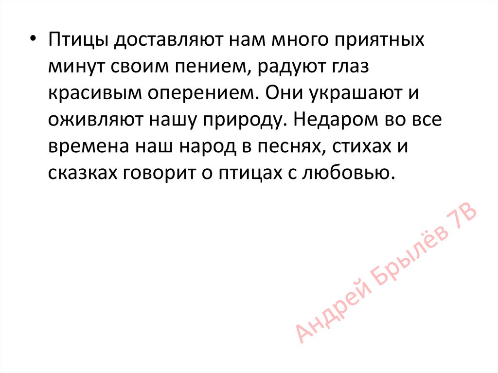 • Птицы доставляют нам много приятныхминут своим пением, радуют глаз