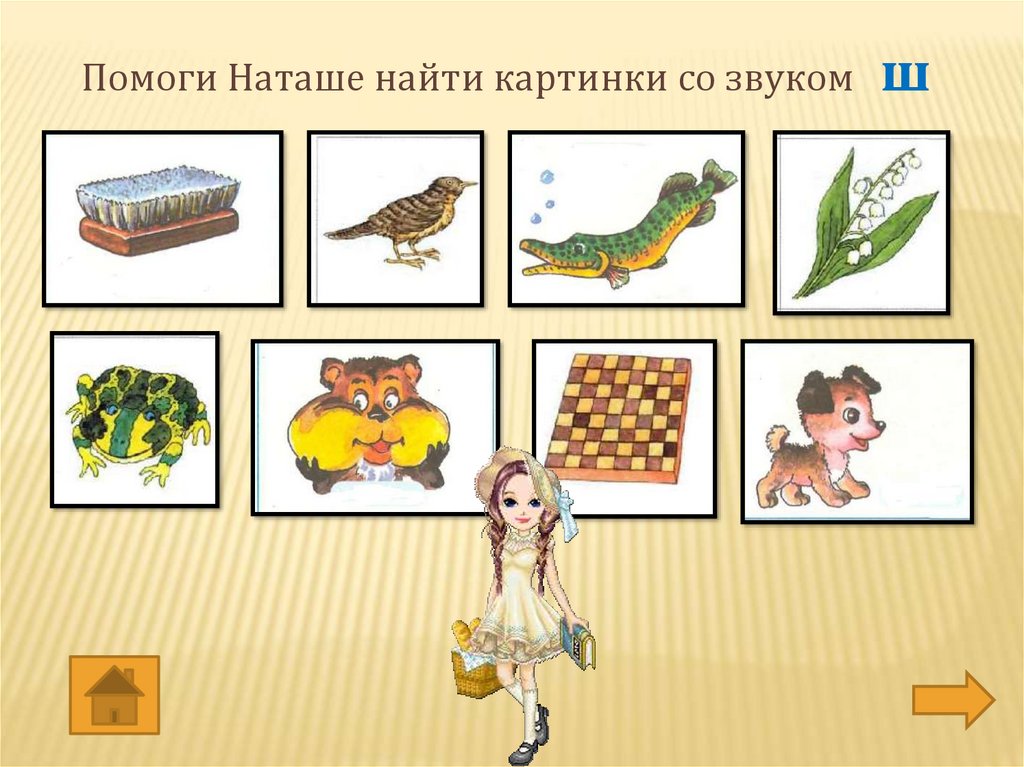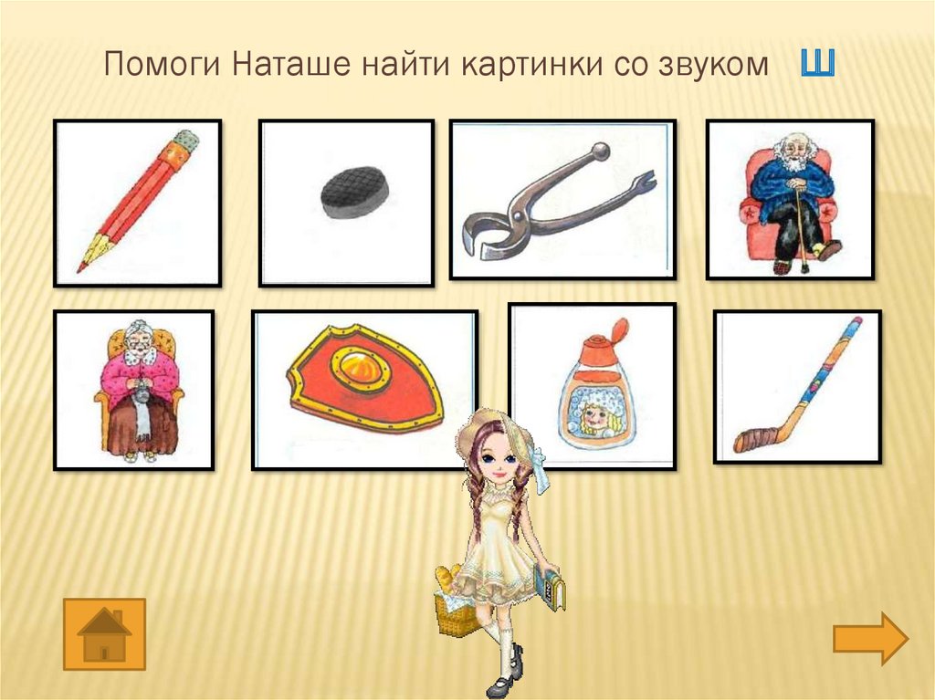 Помоги Наташе найти картинки со звуком