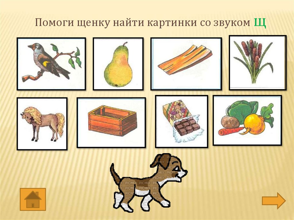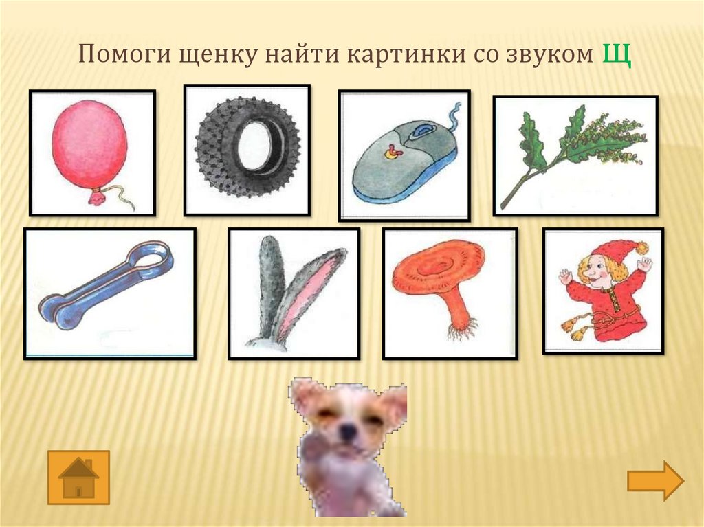 Помоги щенку найти картинки со звуком щ