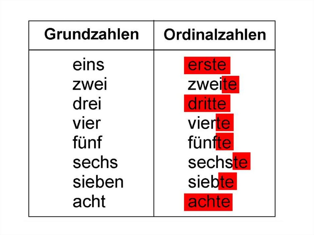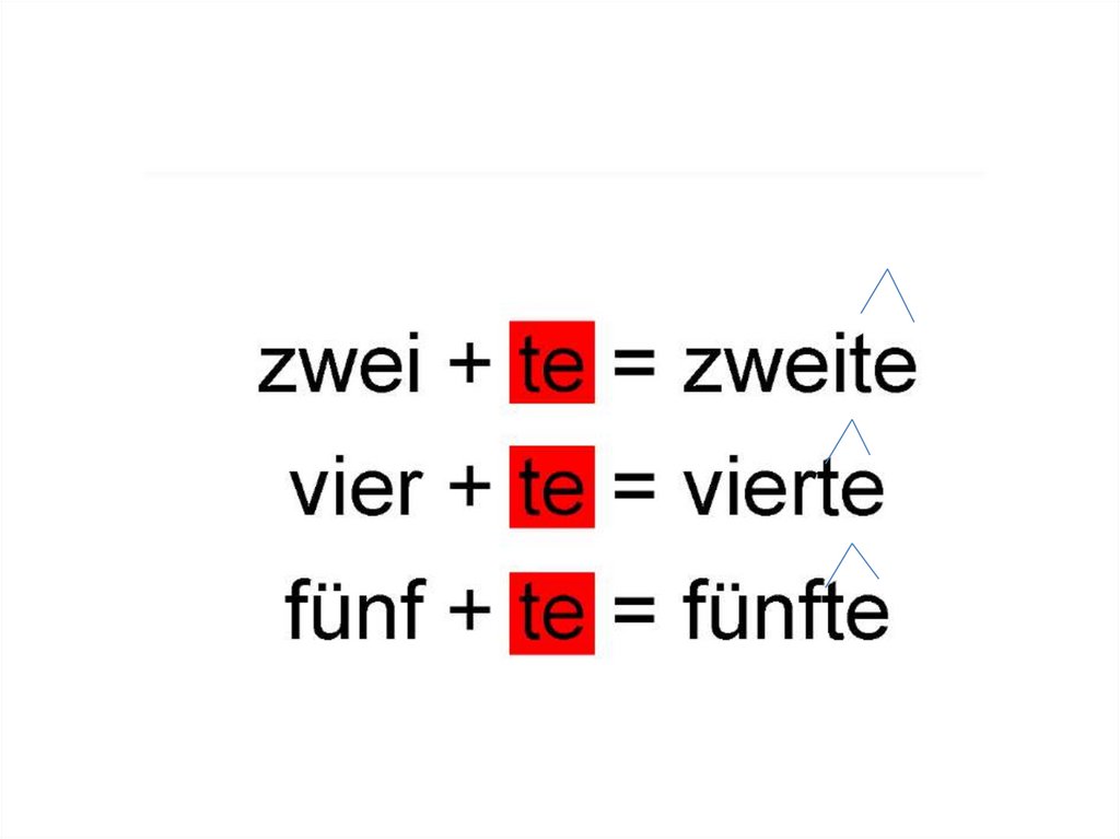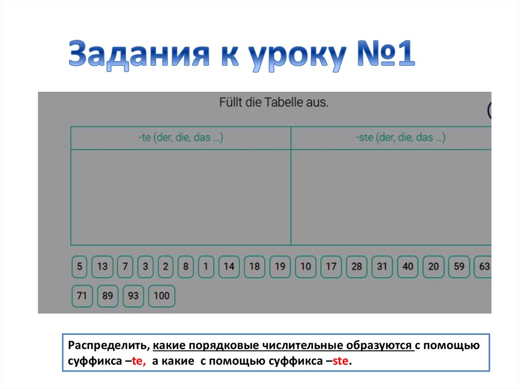Распределить, какие порядковые числительные образуются с помощьюсуффикса –te, а какие с помощью суффикса –ste.