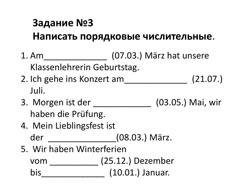 3. Morgen ist der ____________ (03.05.) Mai, wir