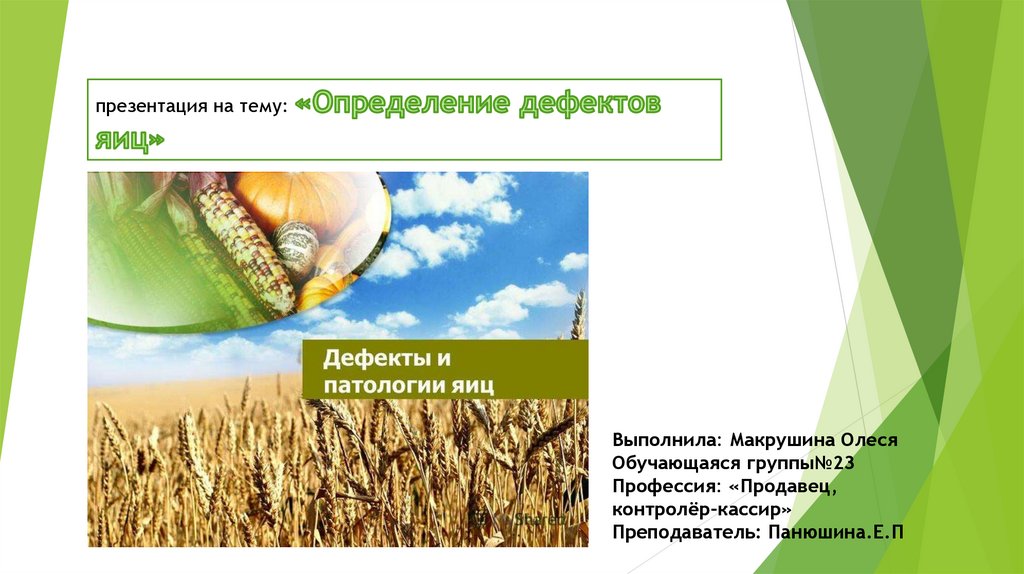 Определение дефектов яиц