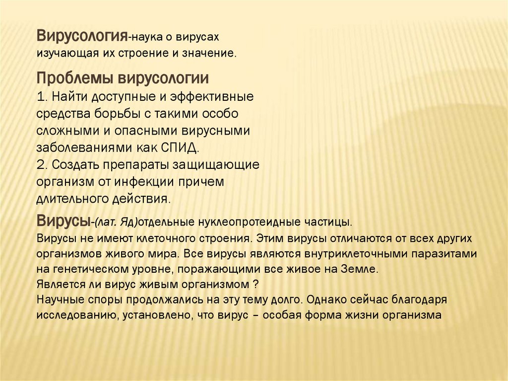 Вирусология-наука о вирусахизучающая их строение и значение.