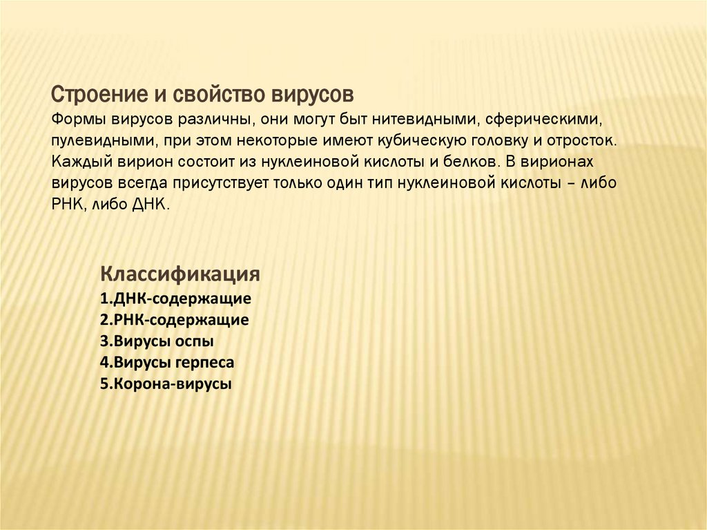 Строение и свойство вирусовФормы вирусов различны, они могут быт нитевидными, сферическими,