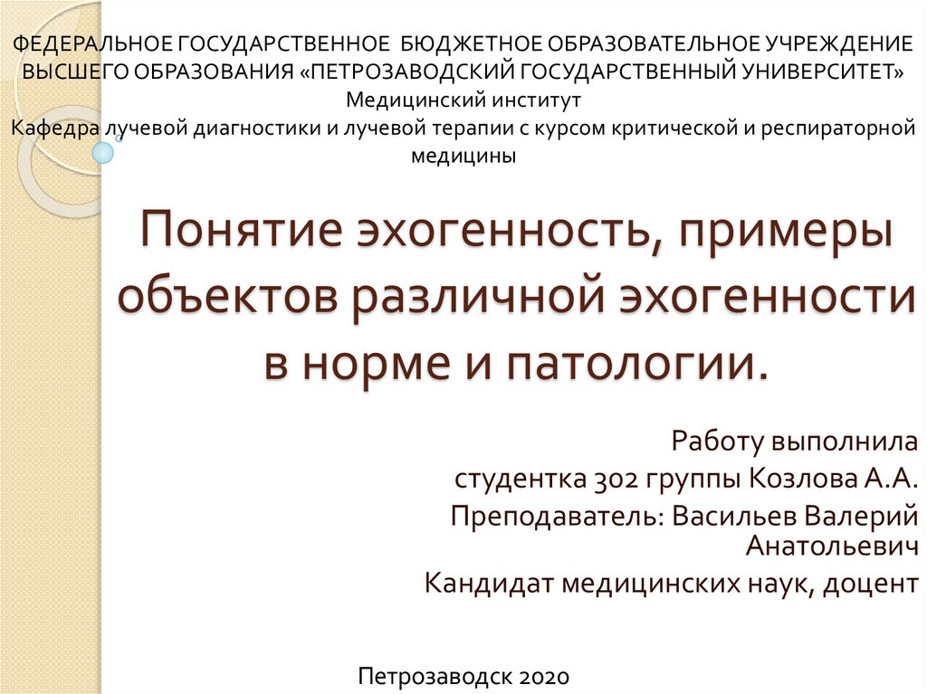 Понятие эхогенность, примеры объектов различной эхогенности в норме и патологии