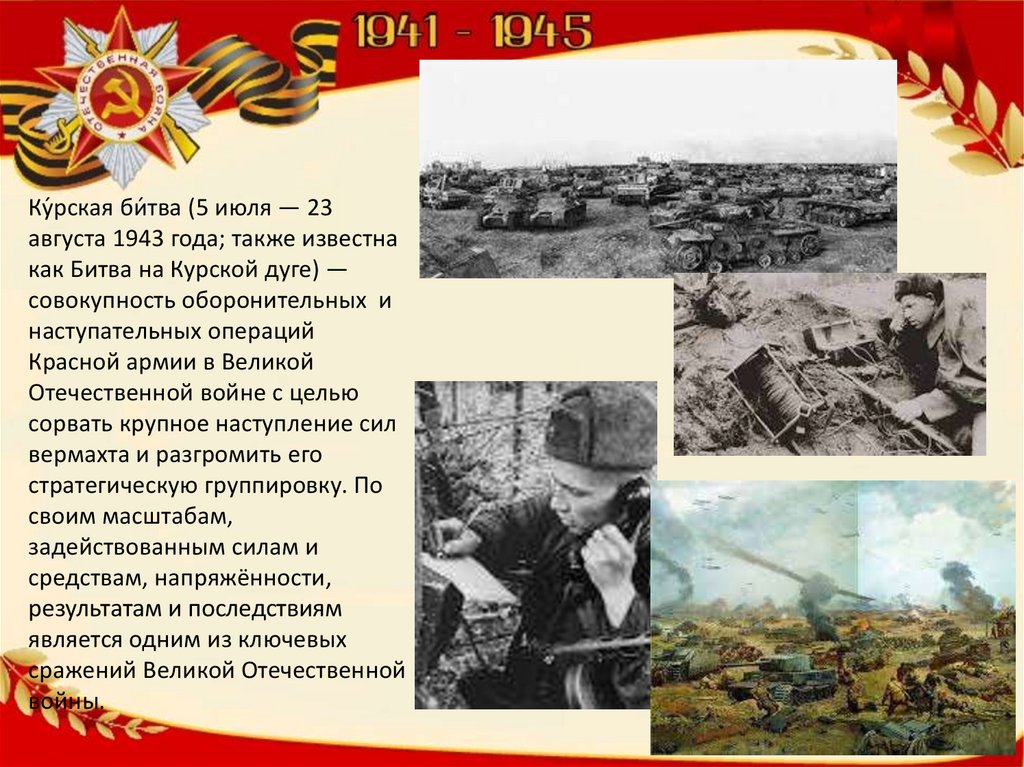 Ку́рская би́ тва (5 июля — 23августа 1943 года; также известна