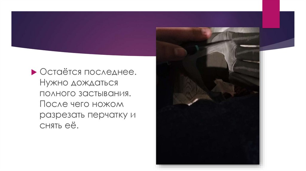 разрезать перчатку и