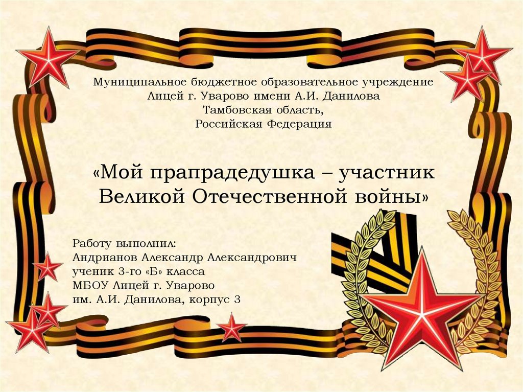 Муниципальное бюджетное образовательное учреждениеЛицей г. Уварово имени А.И. Данилова