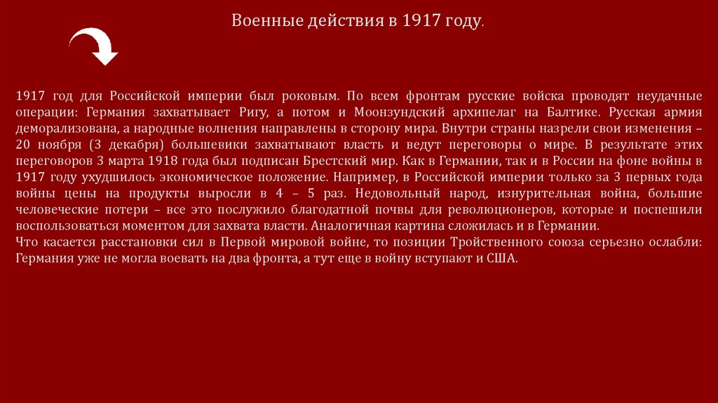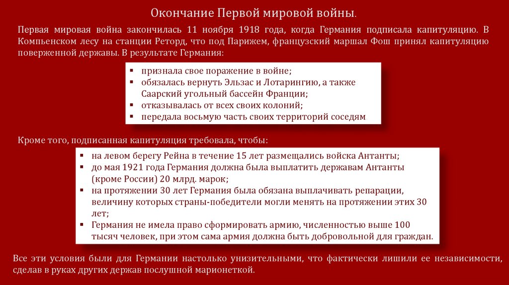 • Изучить последствия первой мировой войны.