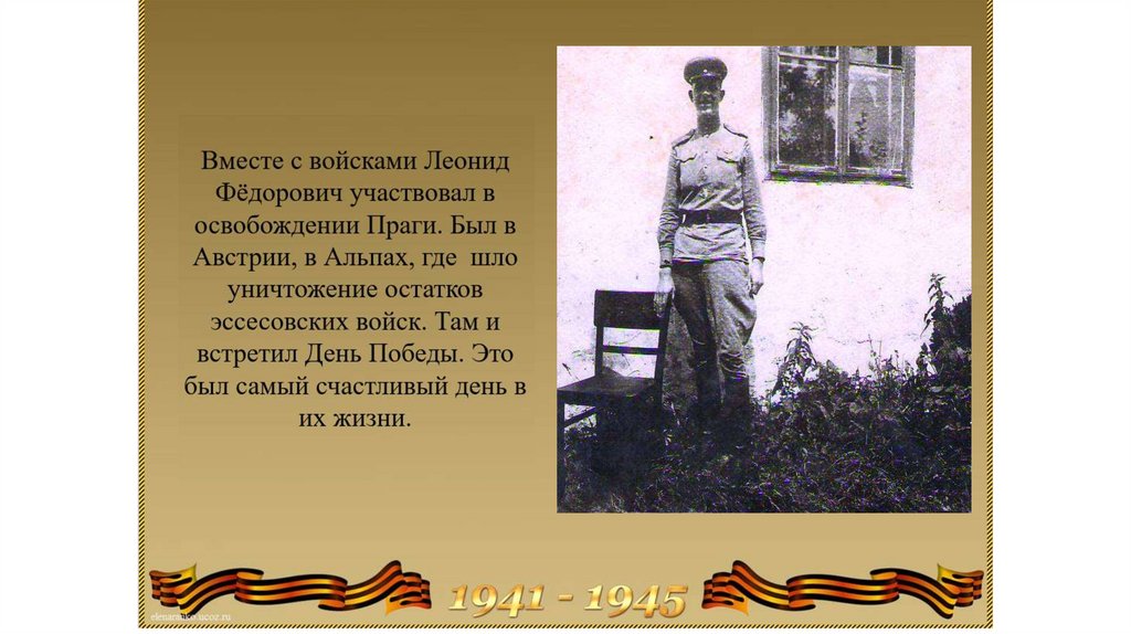 4. Леонид Фёдорович воевал в составе Первого Украинского фронта под командованием маршала И. Конева и участвовал в боях на Курской