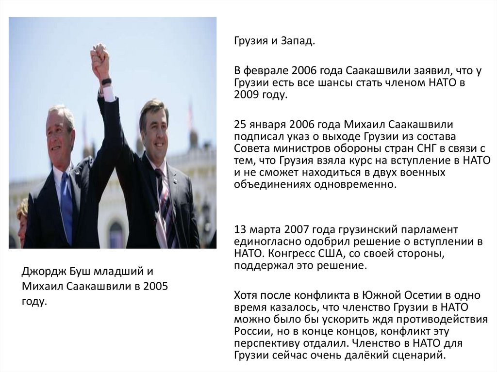 • Однако вскоре Саакашвили начал проводить курс ориентации на