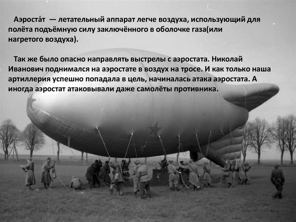 Так же было опасно направлять выстрелы с аэростата. Николай
