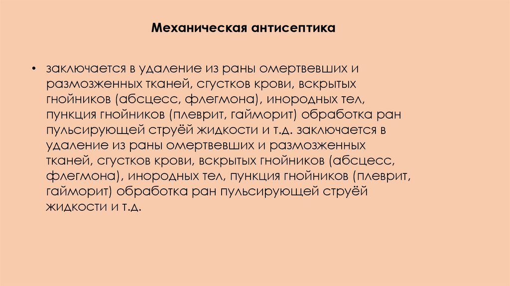 Механическая антисептика• заключается в удаление из раны омертвевших и