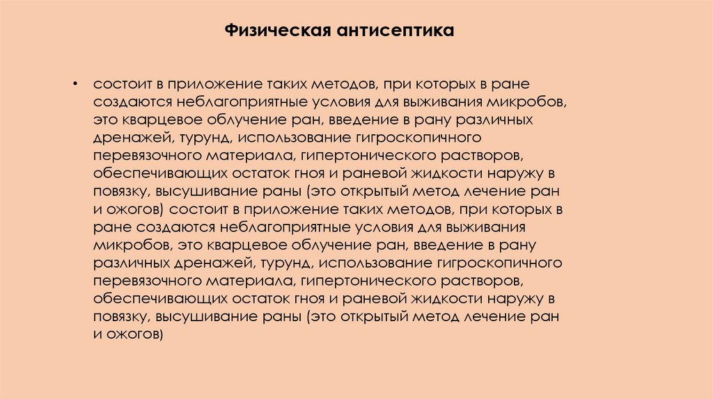 Физическая антисептика• состоит в приложение таких методов, при которых в ране