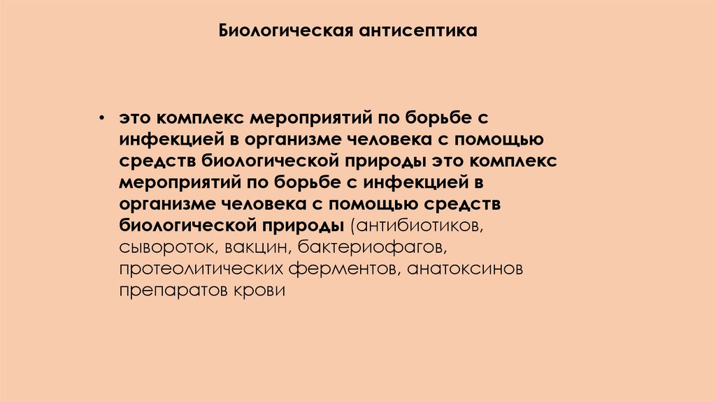 Биологическая антисептика• это комплекс мероприятий по борьбе с
