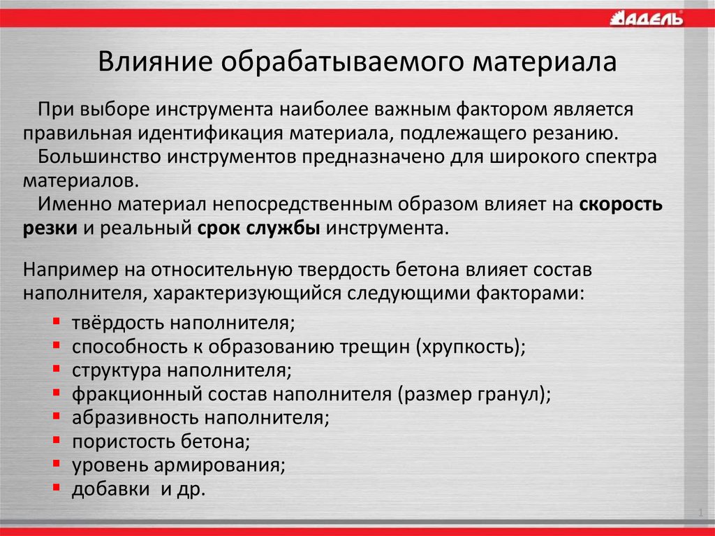 Влияние обрабатываемого материалаПри выборе инструмента наиболее важным фактором является