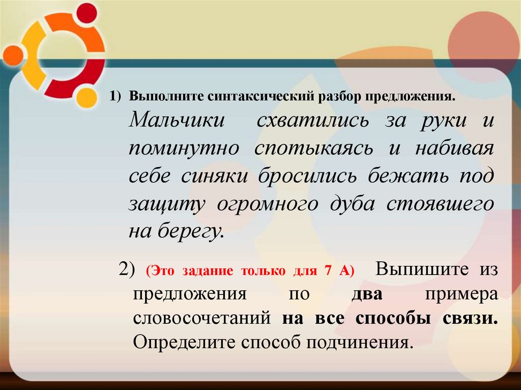 1) Выполните синтаксический разбор предложения.Мальчики схватились за руки и