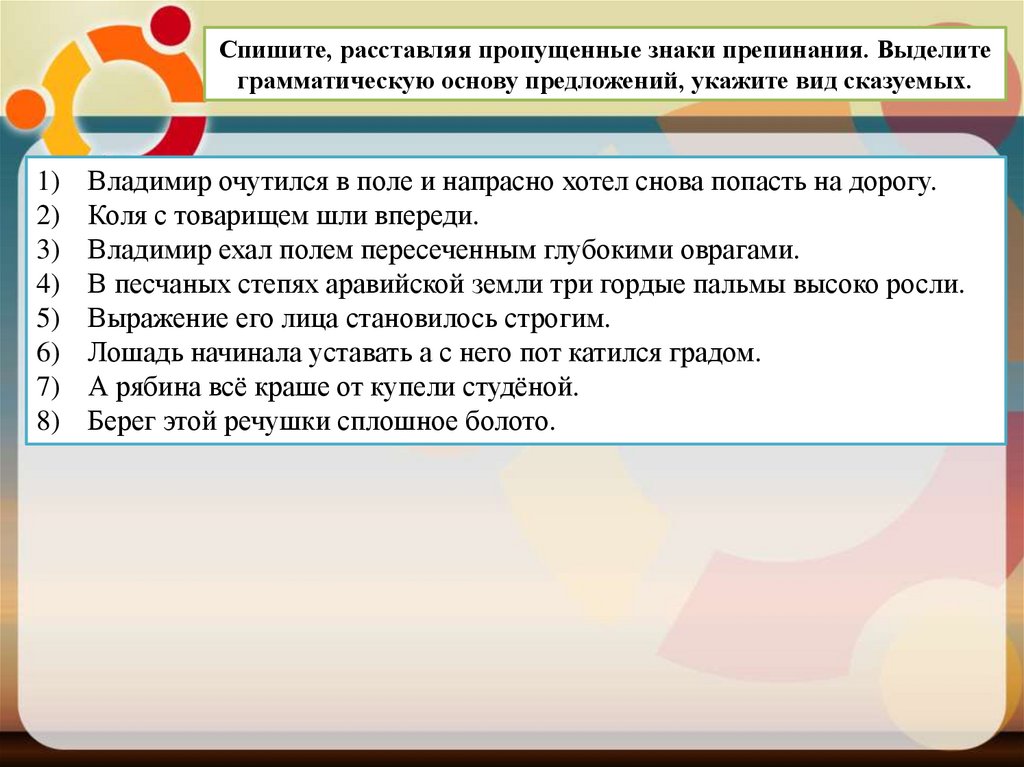 Спишите, расставляя пропущенные знаки препинания. Выделитеграмматическую основу предложений, укажите вид сказуемых.