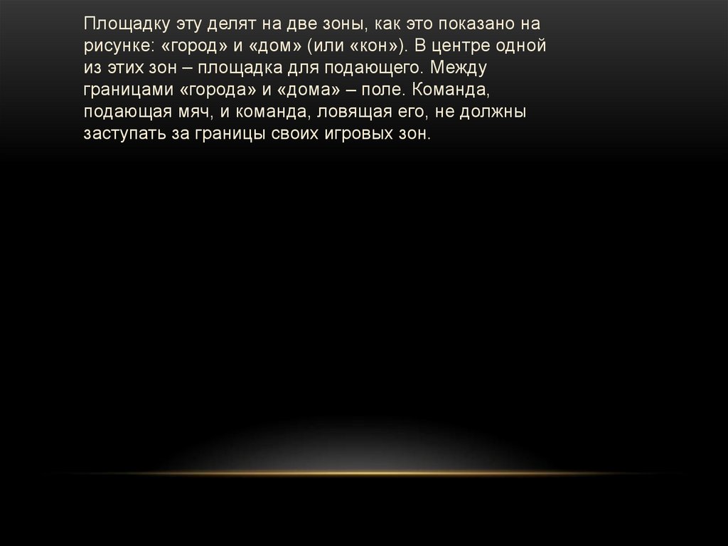Площадку эту делят на две зоны, как это показано нарисунке: «город» и «дом» (или «кон»). В центре одной