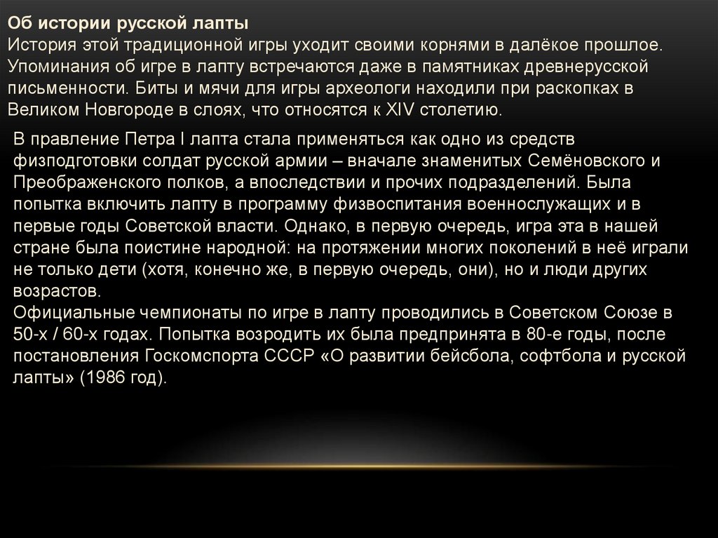 Упоминания об игре в лапту встречаются даже в памятниках древнерусской