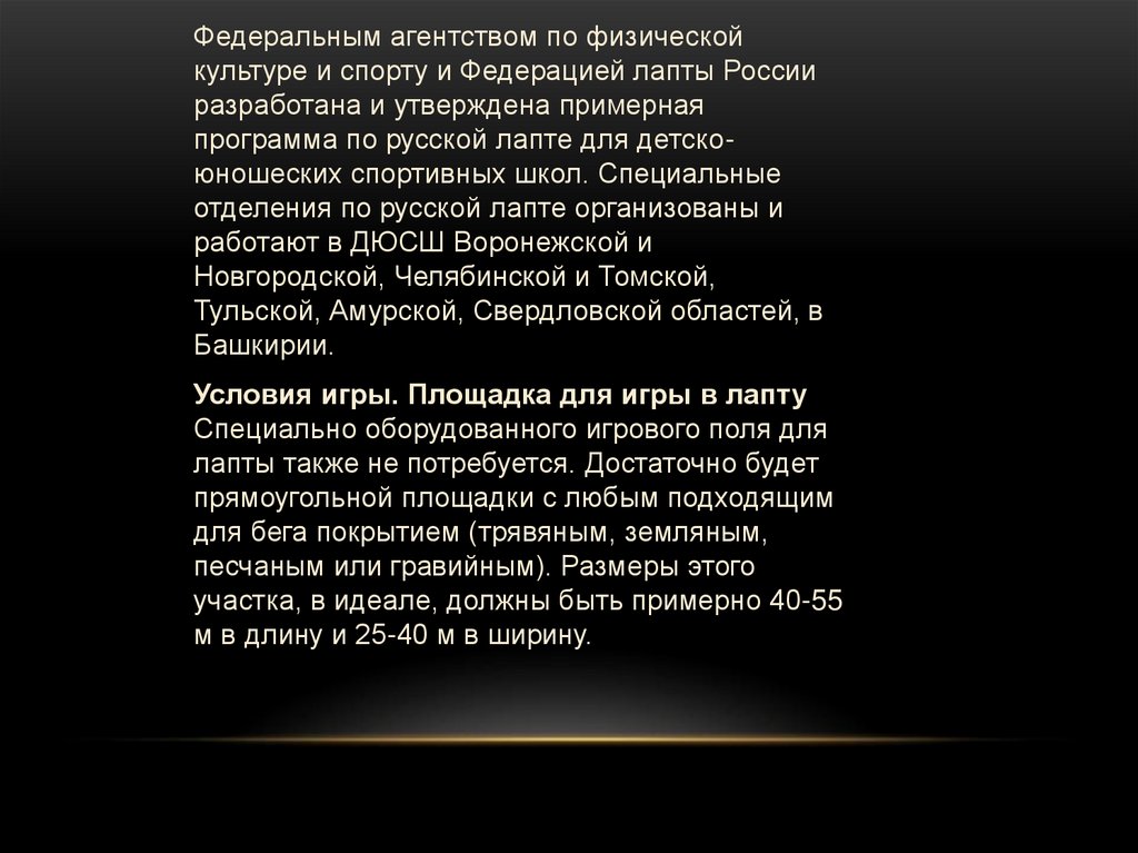 программа по русской лапте для детскоюношеских спортивных школ. Специальные