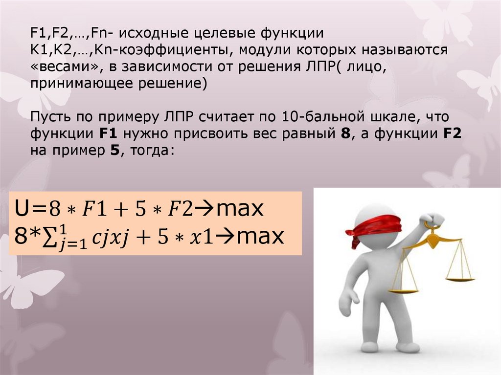 F1,F2,…,Fn- исходные целевые функцииK1,K2,…,Kn-коэффициенты, модули которых называются