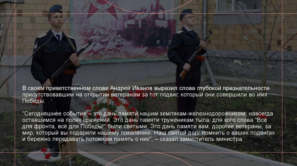"Сегодняшнее событие – это дань памяти нашим землякам-железнодорожникам, навсегда