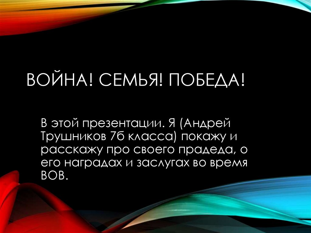 ВОЙНА! СЕМЬЯ! ПОБЕДА!В этой презентации. Я (Андрей