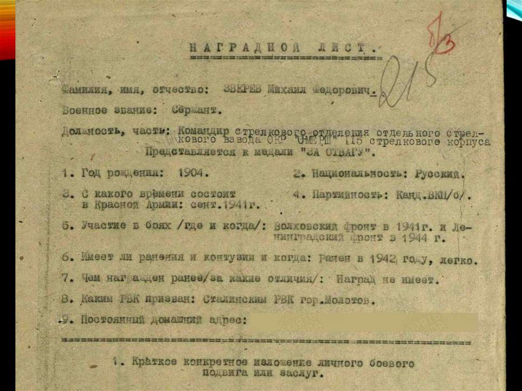 покинувших поле боя”. За что и получил медаль “За
