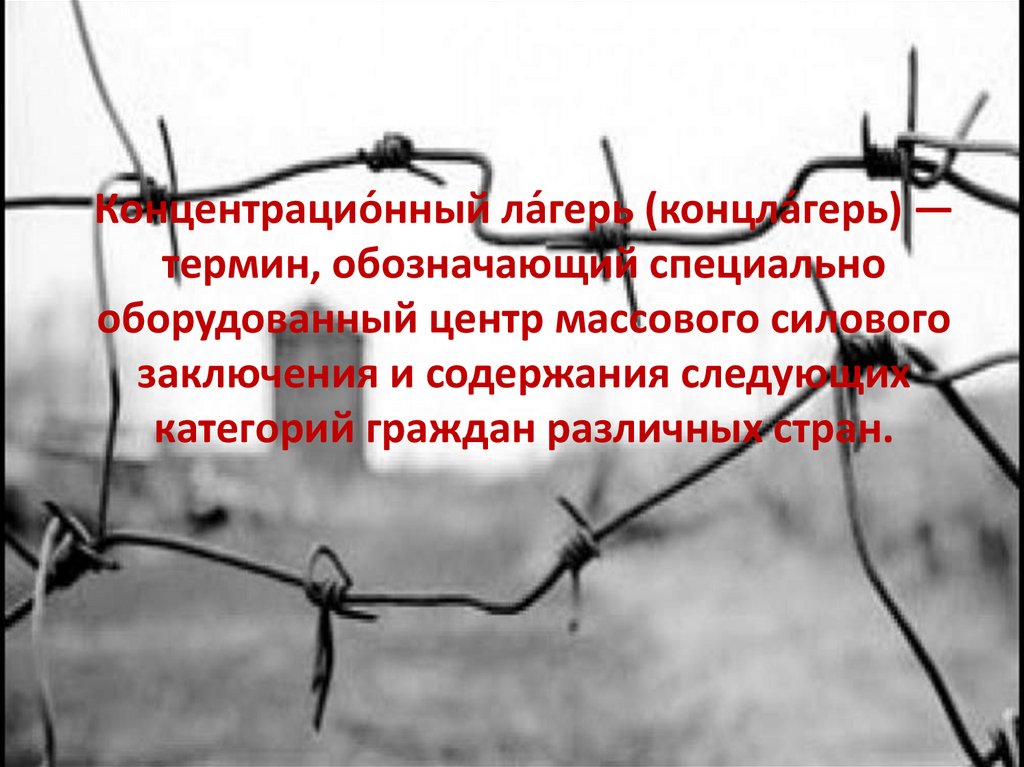 Концентрацио́нный ла́герь (концла́герь) —термин, обозначающий специально