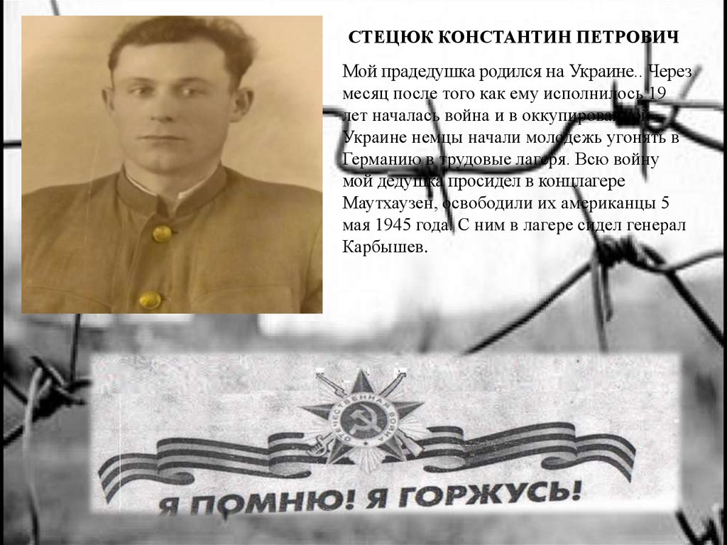 СТЕЦЮК КОНСТАНТИН ПЕТРОВИЧМой прадедушка родился на Украине.. Через