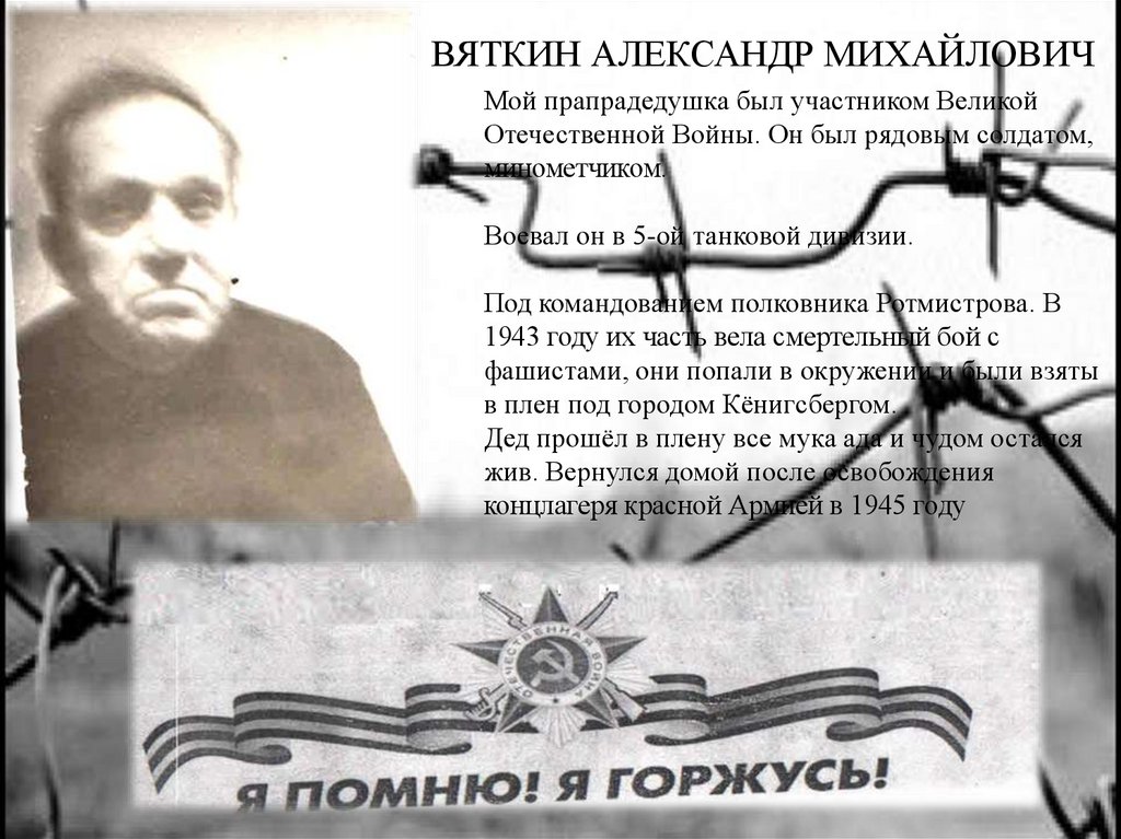 ВЯТКИН АЛЕКСАНДР МИХАЙЛОВИЧМой прапрадедушка был участником Великой