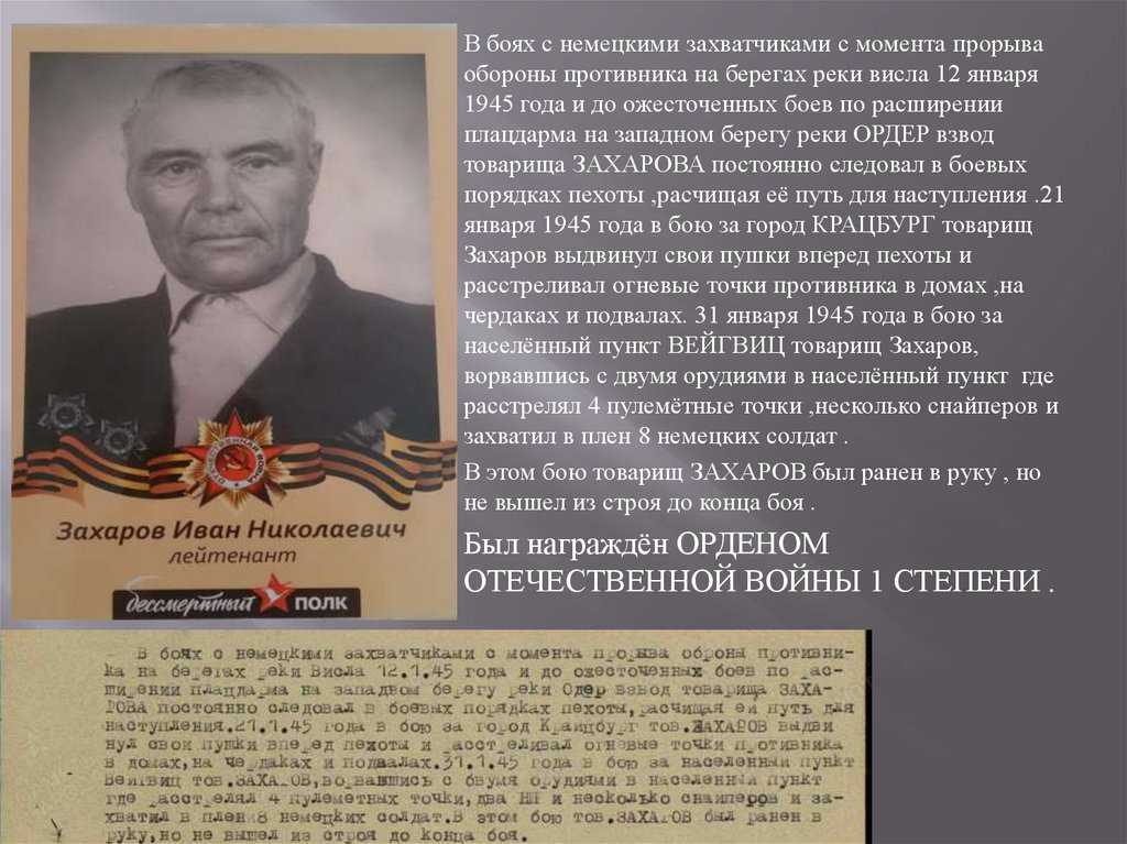 января 1945 года в бою за город КРАЦБУРГ товарищ