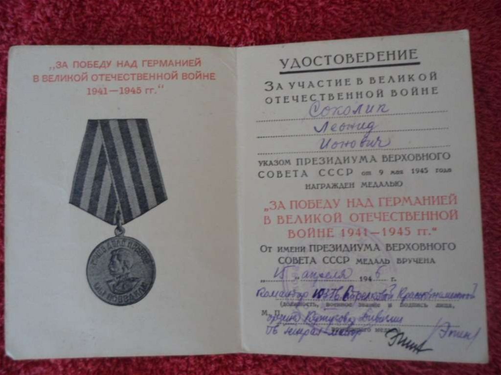 Моя семья в летописи Великой Отечественной. Соколик Леонид Ионович 1923-1999