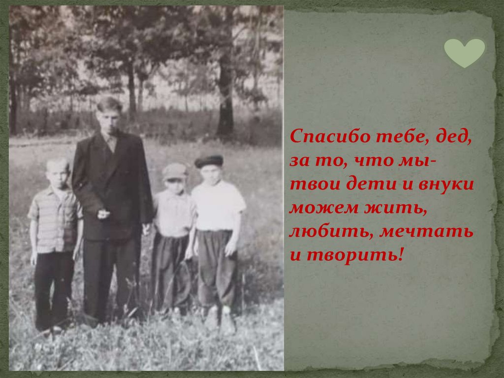 Спасибо тебе, дед,за то, что мытвои дети и внуки
