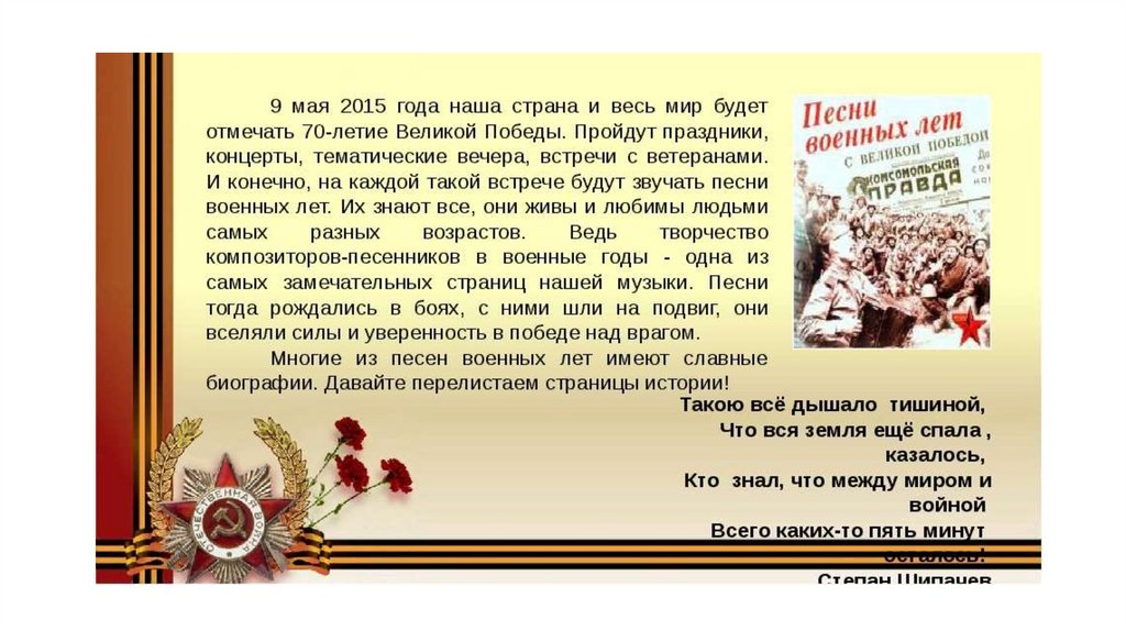 1. Презентация «Песни Победы»