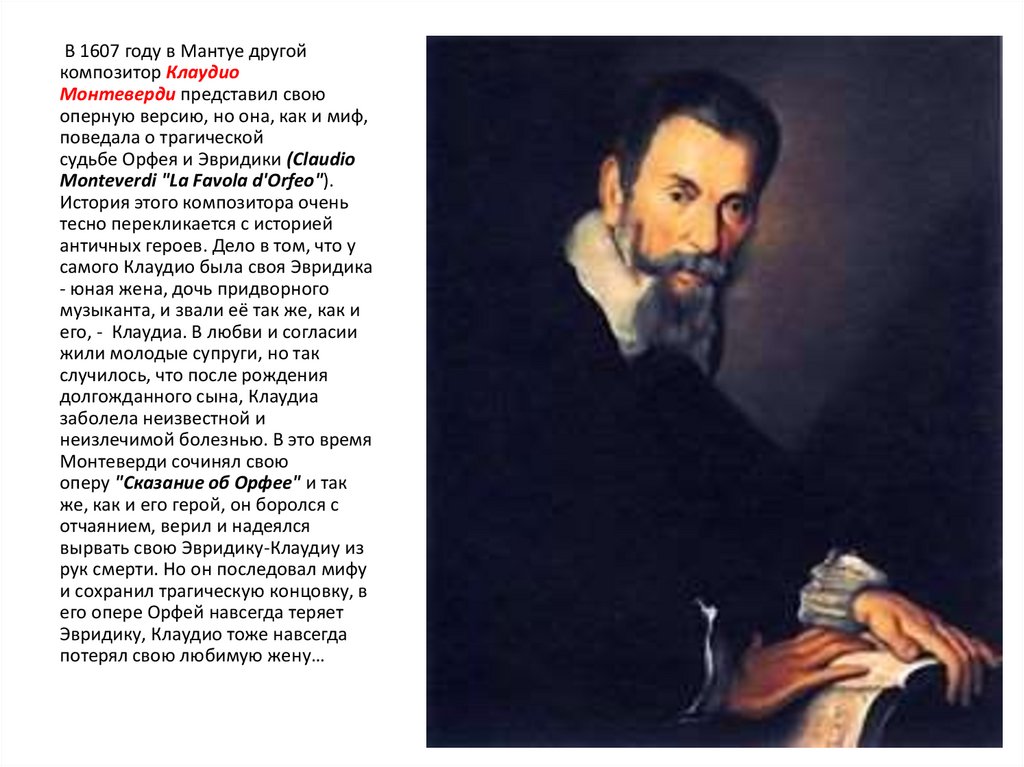 В 1607 году в Мантуе другойкомпозитор Клаудио
