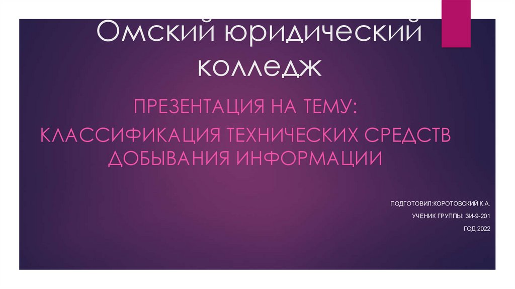 ПРЕЗЕНТАЦИЯ НА ТЕМУ:КЛАССИФИКАЦИЯ ТЕХНИЧЕСКИХ СРЕДСТВ