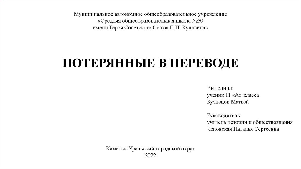 Муниципальное автономное общеобразовательное учреждение«Средняя общеобразовательная школа №60