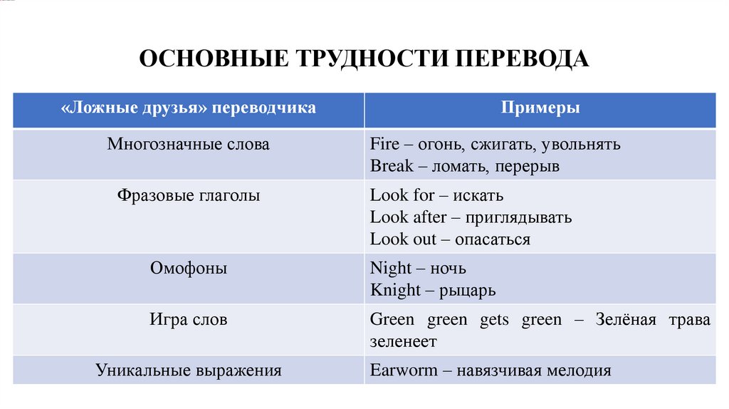 ОСНОВНЫЕ ТРУДНОСТИ ПЕРЕВОДА«Ложные друзья» переводчика