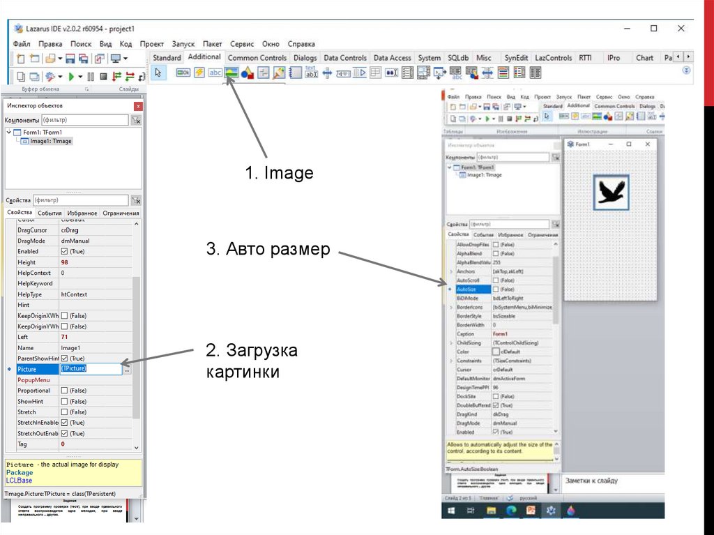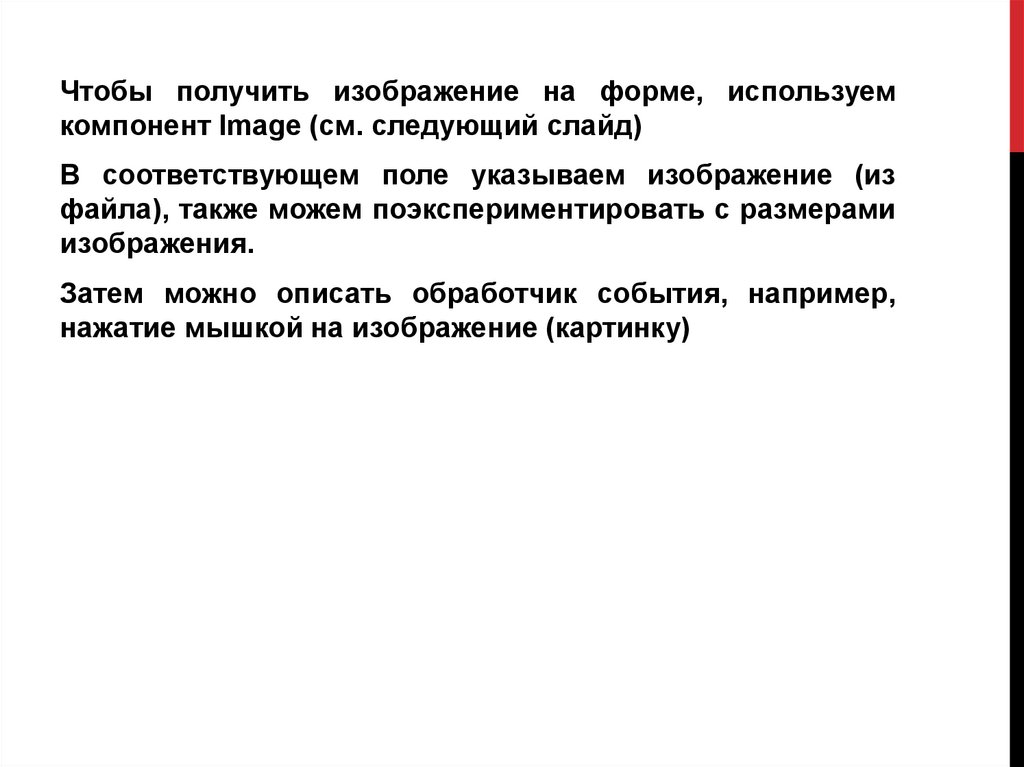 Чтобы получить изображение на форме, используемкомпонент Image (см. следующий слайд)